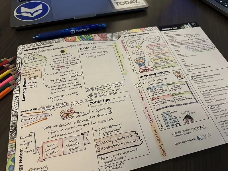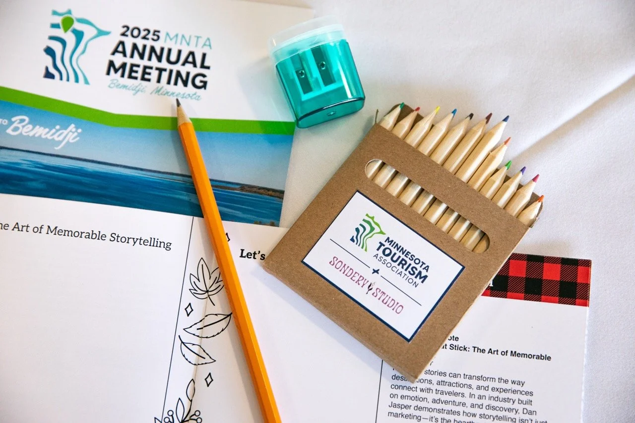 To enhance the attendee experience and support active note-taking, we designed an interactive agenda accompanied by a creative kit featuring colored pencils, a pen, and a combination ruler/fidget tool. This agenda successfully gave people an opportunity to take notes, know the schedule, and also gave them a fun space to color while they listened.